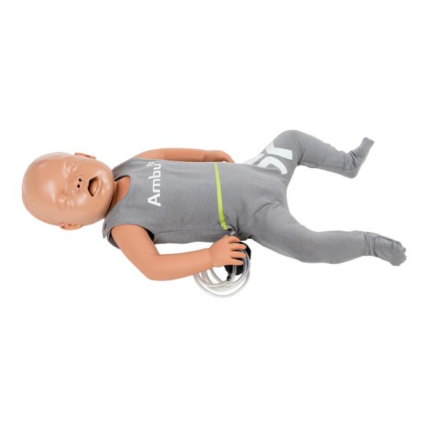 AmbuBaby婴儿模型是模拟一岁以下婴儿的人体模型。它对婴儿身体结构的仿真度极高,便于确定执行胸外按压时正确的手位置。